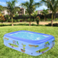 Piscina se instaleaza in doar cateva minute, fara a fi nevoie de unelte sau experienta. Se umfla rapid cu o pompa manuala sau electrica (neinclusa) si este gata de utilizare imediat dupa umplere. La finalul zilei, poate fi dezumflata si depozitata cu usurinta datorita dimensiunilor compacte.