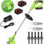 ✔ Incluse diverse atașamente pentru tăiatul diferitelor tipuri de ierburi, buruieni și arbuști tineri